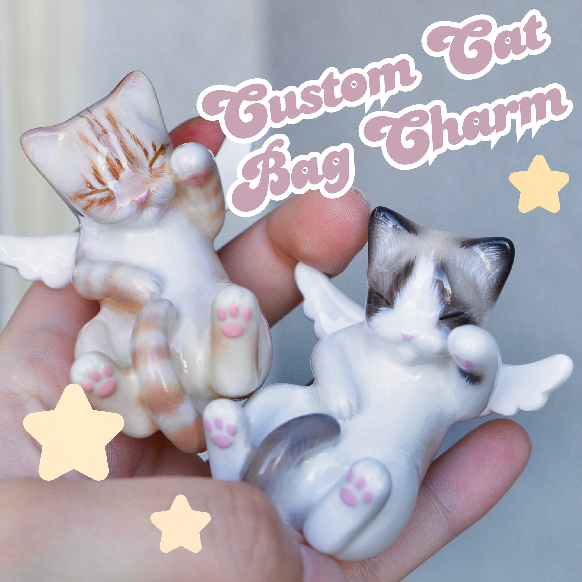 This option is available for anyone who would like to order an Angel Kitty bag charm and have it resemble their own cat.